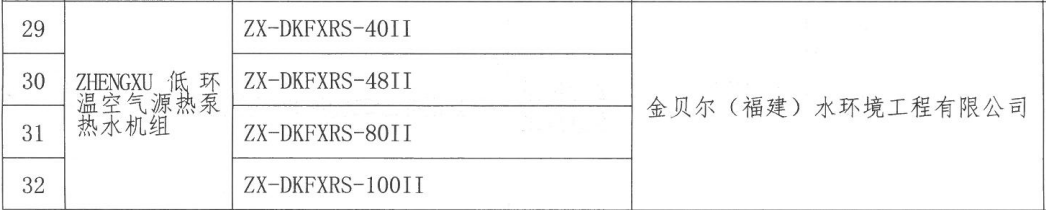 此外,2017年5月10日,由正旭公司配合经销商金贝尔(福建)水环境工程有限公司申报的福建省《福建省<节能产品推广目录>(第三批)》,经由国家权威机构“福建省节能监察(监测)中心”审核确认,成功列入《福建省<节能产品推广目录>(第三批)》,其中有4款正旭低环温空气源热泵热水机组入选。